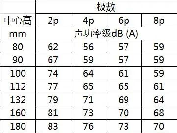 噪聲在實(shí)時(shí)監(jiān)控預(yù)警中由于干擾因素很多,存在較大困難,一般對電機(jī)在空載狀況下的噪聲進(jìn)行測試,從而分析電機(jī)可能存在的問題,盛華變頻電機(jī)廠家整理上表對傳統(tǒng)電機(jī)的空載噪聲進(jìn)行了梳理。