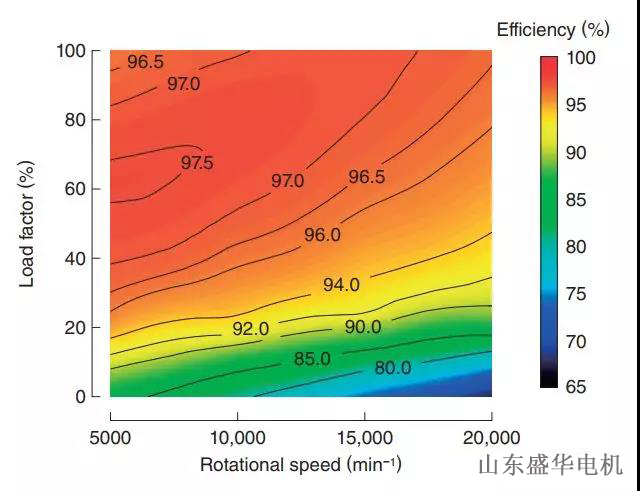 最終通過仿真,該大功率電機(jī)在額定運(yùn)行點(diǎn)上的效率為96%,而最大效率超過97%。溫升也低于預(yù)期。