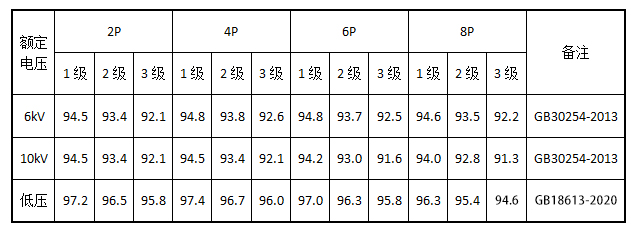 在之前的文章中,盛華電機(jī)也談過高壓電機(jī)和低壓電機(jī)的優(yōu)勢(shì)比較,對(duì)于大功率電機(jī),由于低壓電機(jī)制造工藝及成本的局限性,大功率電機(jī)更多地選擇高壓電機(jī);功率200kW左右的電機(jī),有低壓電機(jī)也有高壓電機(jī),但從兩者效率的能效限定要求比較,很難界定哪種電機(jī)更節(jié)能。下表是250kW、不同電壓等級(jí)電機(jī)的效率限定及能效等級(jí)界定值,從表中數(shù)據(jù)看,低壓電機(jī)的效率更高一些。